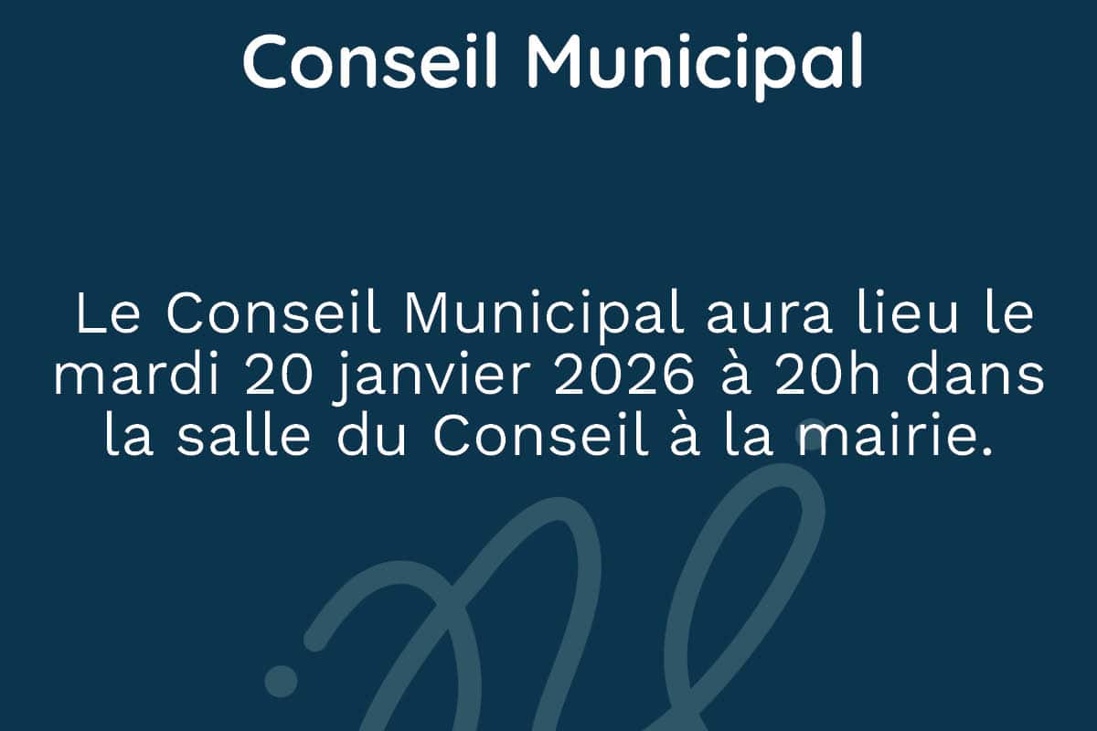 Le prochain Conseil Municipal aura lieu le mardi 20 janvier 2026 à 20h dans la salle du Conseil à la mairie.