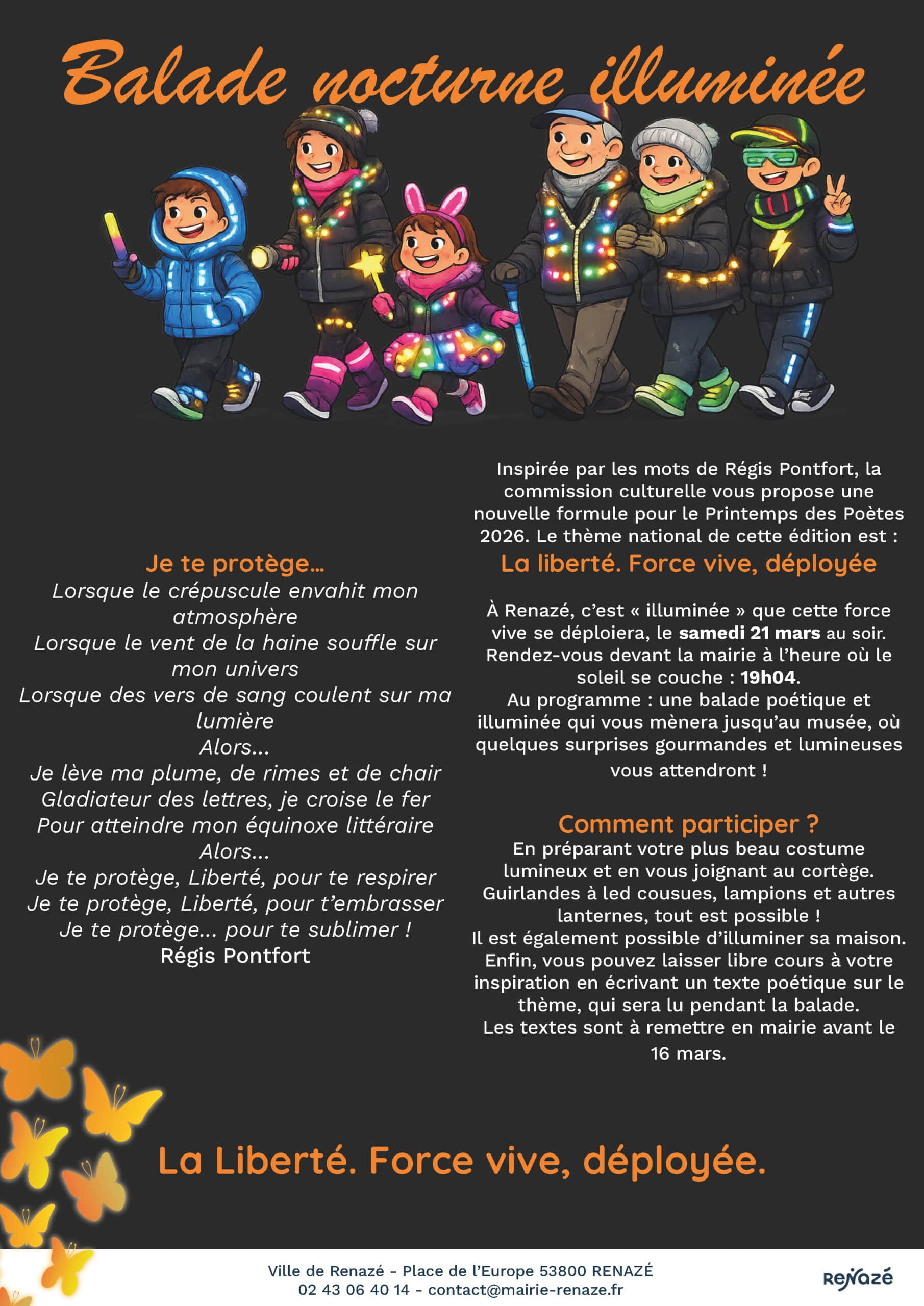 Enfin, vous pouvez laisser libre cours à votre imagination en écrivant un texte poétique sur le thème, qui sera lu pendant la balade. Les textes sont à remettre en mairie avant le 16 mars.