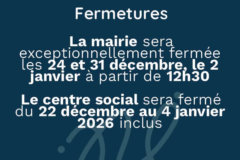 La mairie sera fermée les 24 et 31 décembre ainsi que le 2 janvier 2026 à partir de 12h30.